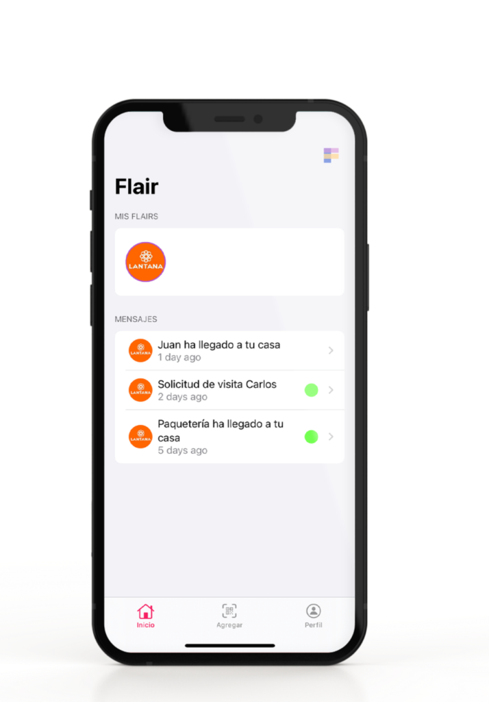 Conoce Flair ¡Con Flair tienes el control de los accesosa tu colonia! Conecta con el vigilante en caseta y podrás aceptar o rechazar las solicitudes de tus visitas. Funcionalidades Diferentes maneras de dar accesos Por solicitud Auto aceptar Códigos de un solo uso Modopaquetería Contamos también con reservación de espacios, con la que podrás reservar las áreas comunes que ofrece tu colonia desde tu celular. ¡Solicita una demostración y Cotización! Ponte en contacto con nosotros Tu nombre Tu correo electrónico Asunto Tu mensaje +52 81 1081 5915 flairappservice@gmail.com Descarga Flair Síguenos:
